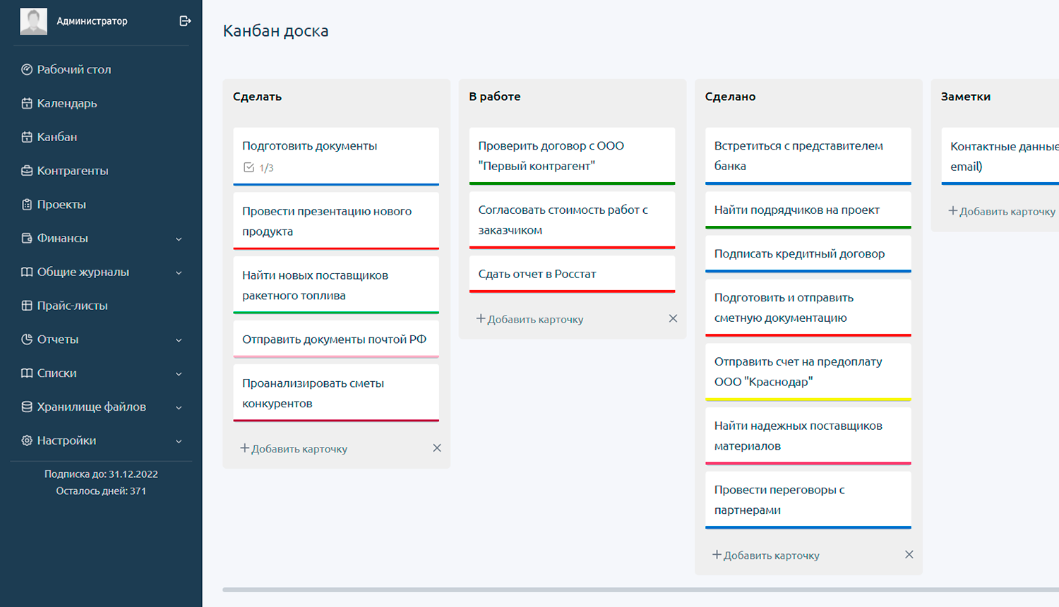 Организуйте свои дела на канбан-доске, создавайте колонки и карточки. Сортируйте их на свое усмотрение.